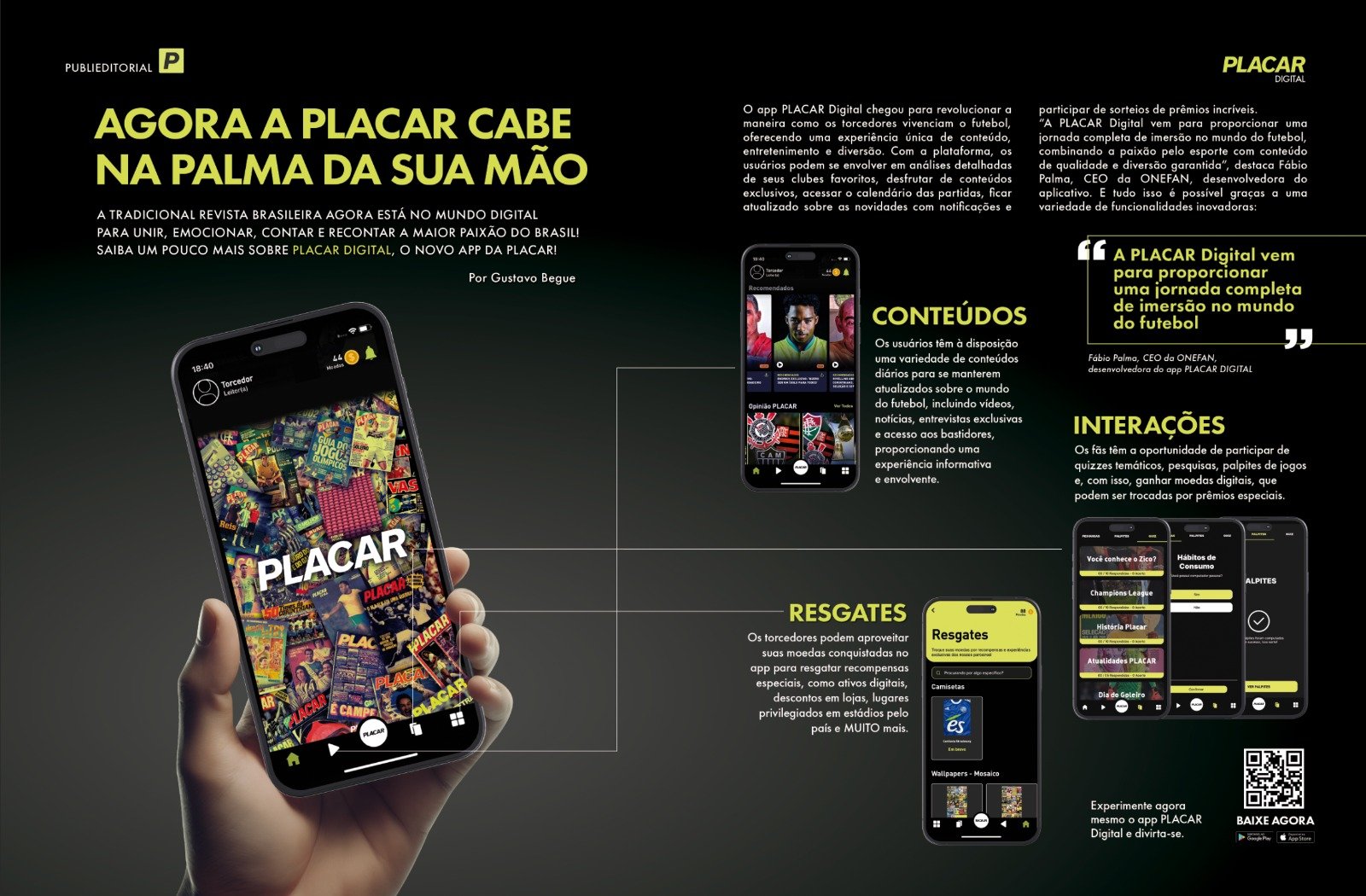 Publieditorial desenvolvido para a Revista Placar com foco no lançamento do app Placar Digital, conectando a autoridade da marca com uma nova experiência mobile. A narrativa foi construída para apresentar o produto de forma envolvente, destacando funcionalidades, benefícios e o valor da imersão no universo do futebol dentro do aplicativo.